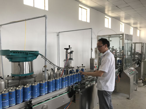 針對產量比較高,有穩定、廣泛的銷售渠道,大量生產的企業,我們推薦上全自動空氣灌裝生產線,整條線由理瓶臺、上閥、封口、充氣、水浴檢測、稱重、扣噴嘴、扣大蓋、貼標打碼、封箱打包等組成。生產效率高,自動化程度高,同時還能節省工人。
